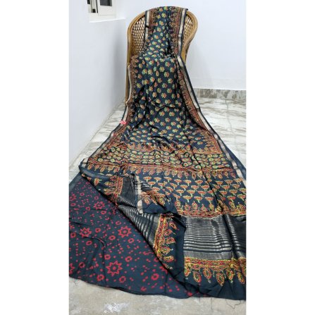 The Temple design is on khadi cotton with a Ganga-Yamuna border and BP.
