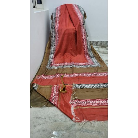 Authentic Tusser Silk Saree with Silk mark tag from the manufacturers. Plain jerry border on both sides with running BP.
