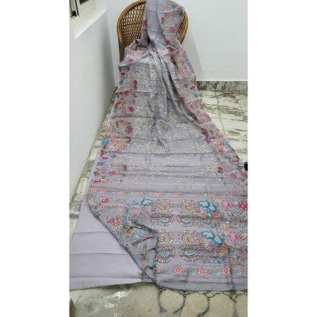 The Temple design is on khadi cotton with a Ganga-Yamuna border and BP.